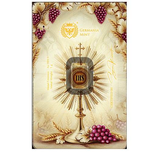 Die Vorderseite enthält auch die Inschrift "Germania Mint" oder "Germania 999,9 Fine Gold", um die Herkunft und den hohen Goldgehalt des Barrens zu kennzeichnen.