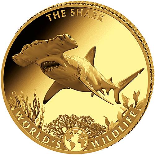 Das Design der Münze "Worlds Wildlife" zeigt den Hai.