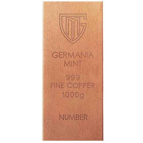 Entdecken Sie mit dem 1000 g Kupfer-Rohbarren von Germania Mint eine besondere Möglichkeit, Sachwerte neu zu denken. Dieses Produkt richtet sich an Anleger, die auf physische Werte setzen und dabei auf Substanz und Charakter achten.Im Gegensatz zu herkömmlichen Barren überzeugt dieses Stück durch seine unverfälschte Gestaltung. Gefertigt aus einem Kilogramm Feinkupfer (999), steht es für Klarheit und Ursprünglichkeit. Jeder Barren entsteht aus einem massiven Kupferblock, wird exakt zugeschnitten, individuell nummeriert und mit markanten Punktprägungen versehen – Details, die seine Echtheit und Einzigartigkeit unterstreichen.