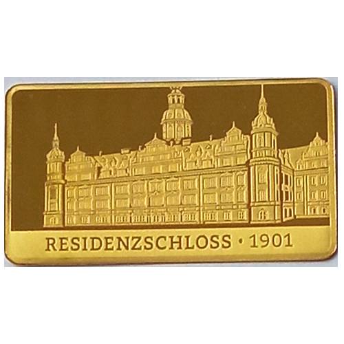 Das Goldset wird in eigens dafür hergestellter Blisterverpackung geliefert und enthält Sonderbarren 1 gramm Zwinger, Goldener Reiter, Brühlsche Terrasse, Fürstenzug, Blaues Wunder, Yenidze, Russisch Orthodoxe Kirche, Erich Kästner, Residenzschloss, Albertinum, Frauenkirche, Semperoper.