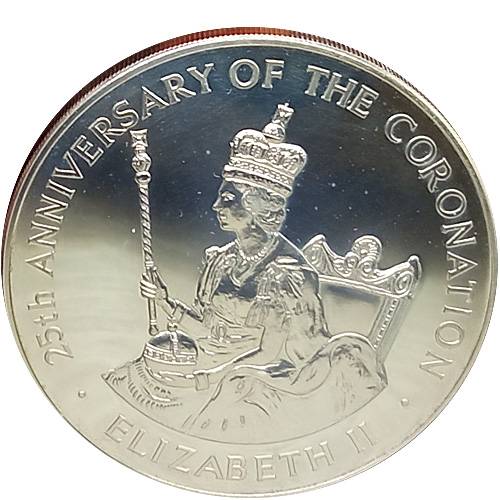 - Inschrift: "25th ANNIVERSARY OF THE CORONATION OF QUEEN ELIZABETH II".
