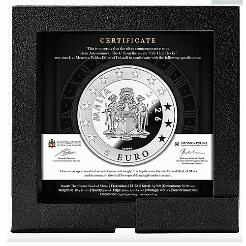 Die Silbermünze wird mit Zertifikat und Box geliefert.