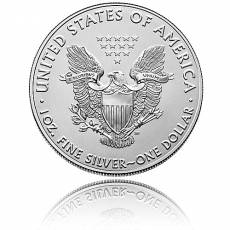 Auf der Rückseite der Silbermünze ist der Weißkopfseeadler, umrandet vom Nennwert 1 Doller sowie Finesilver und United Staates of America.