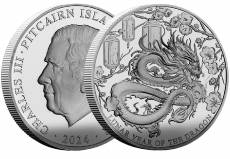 Silbermünze 2 oz Lunar Year of the Dragon Proof Pitcairn Islands 2024