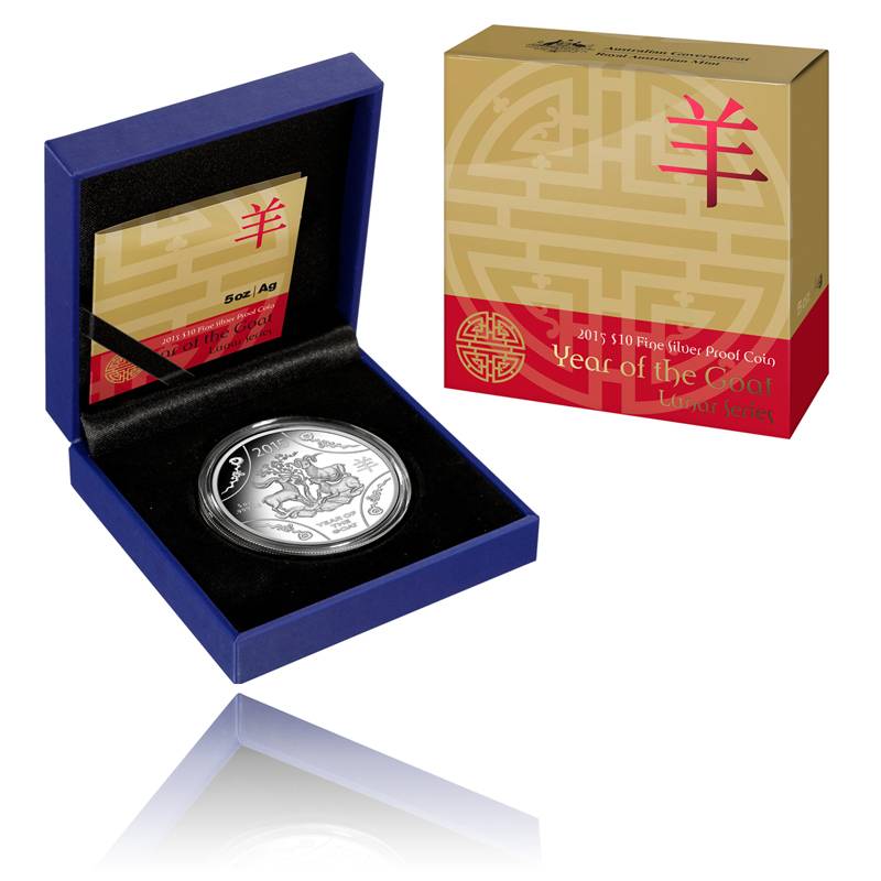 Australien 10$ Jahr der Ziege - 5 Oz. Silber PP 2015